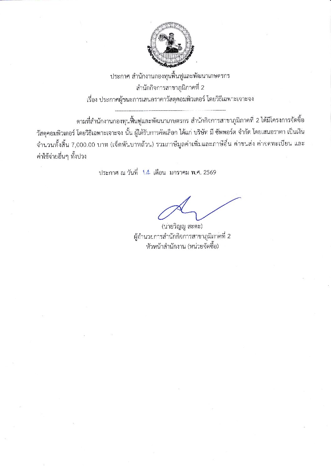 Posted on 14 มกราคม 2026 ประกาศผู้ชนะการเสนอราคาวัสดุคอมพิวเตอร์ โดยวิธีเฉพาะเจาะจงดาวน์โหลด FacebookTwitterLinkedIn